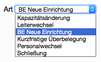 Wählen Sie die Antragsart in der Auswahlbox aus und füllen Sie im Anschluss die hierfür notwendigen Felder aus.