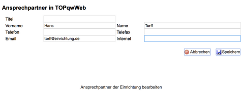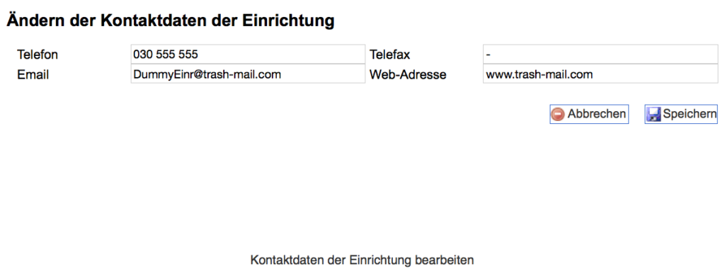 Daher ist es wichtig, dass sowohl beim Träger wie auch beim eventuell eingerichteten Anwender für Einrichtungen eine gültige E-Mail-Adresse, als Kontakt hinterlegt ist.