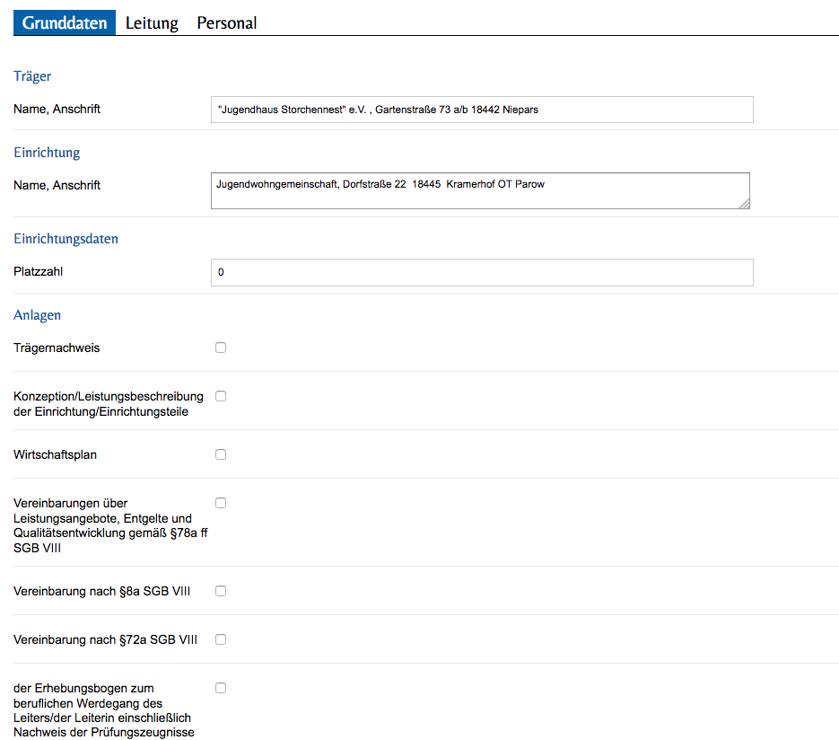 Als Einrichtung erscheinen alle Einrichtungen, die Ihnen Ihr Einrichtungsträger zugewiesen hat.