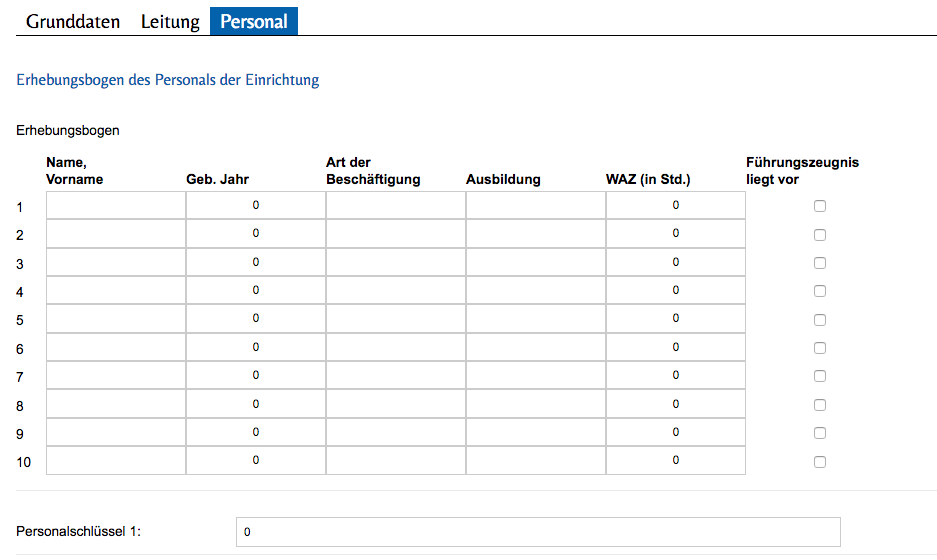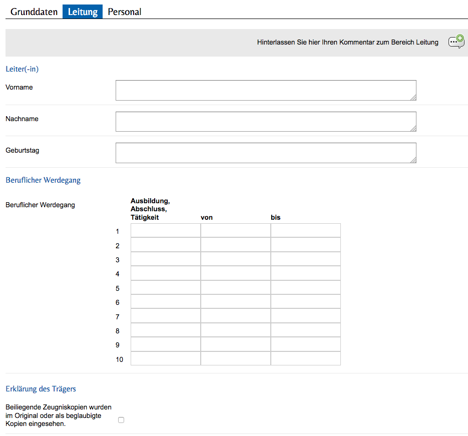 Diese gliedern sich identisch zu dem Antragsformular in Papierform in drei Bereiche: