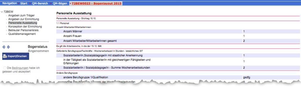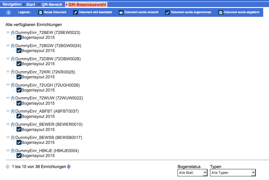 Als Einrichtungsträger können Sie alle BE-Verfahren Ihrer Einrichtungen einzusehen.