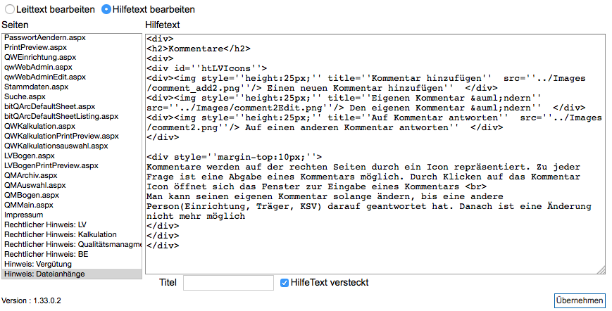 Editieren Sie als Administrator diverse Texte, die TOPqw Web an vordefinierter Stelle anzeigt.