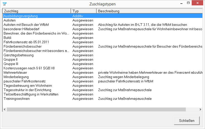 Öffnet das Dialogfenster „Zuschlagstypen“