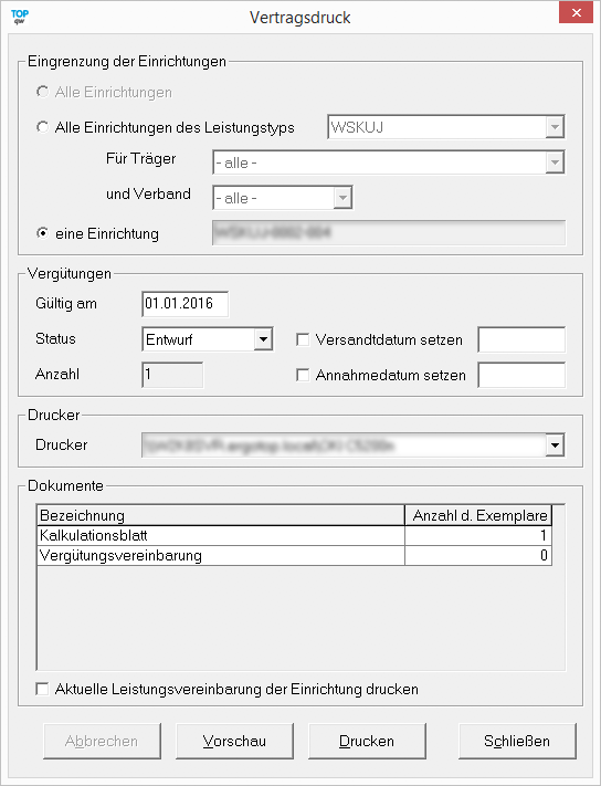 Über den Button Drucken, werden die gewählten Einstellungen sofort zum Drucker geschickt. Dabei stellen Sie unter Dokumente die gewünschte Druckauflage aus.