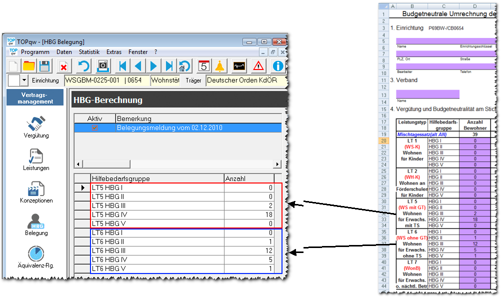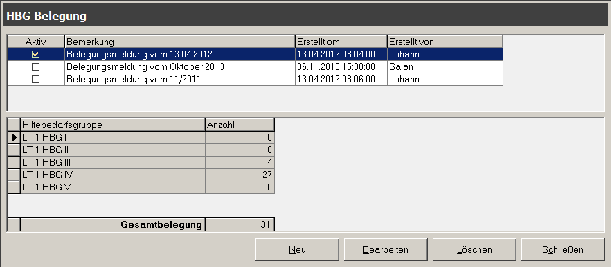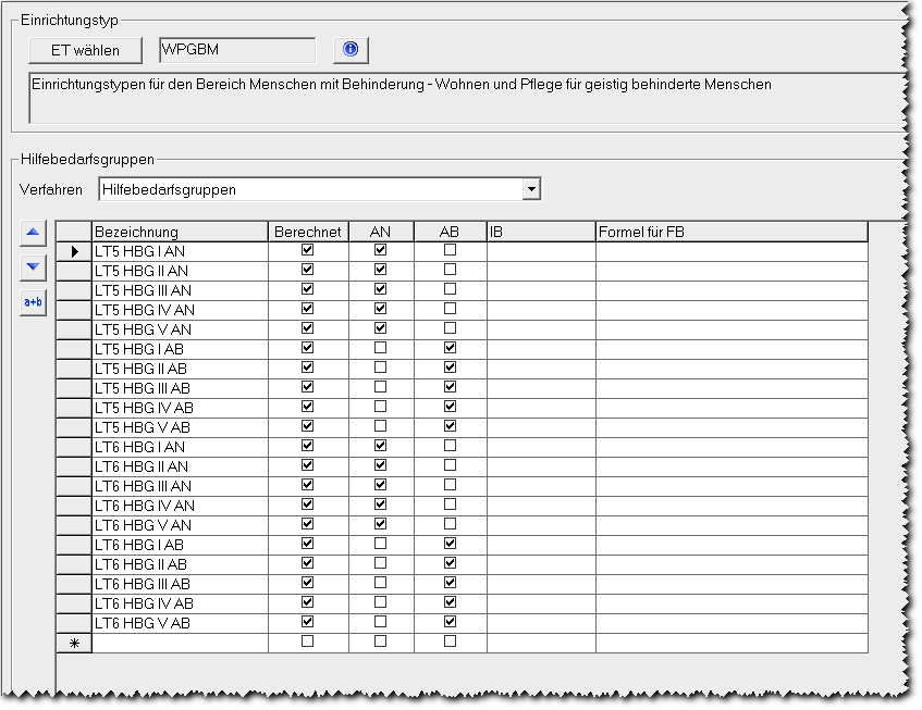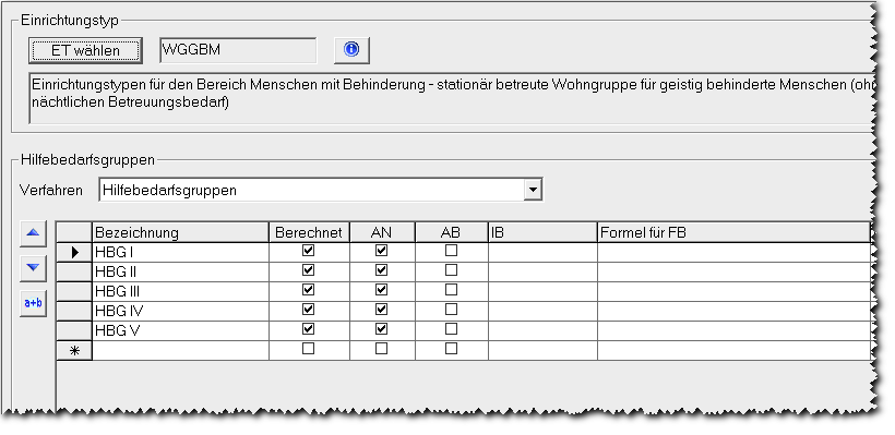 - Für den Einrichtungstyp die Einstellung der Hilfebedarfsgruppe unter Daten → Hilfebedarfsgruppen prüfen.