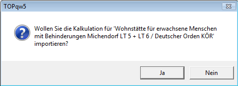 Nachdem die Einstellungen geprüft wurden, kann der Import einer neuen Kalkulation durchgeführt werden. Dazu geht man unter Vertragsmanagement → Vergütung und ruft dort den Assistenten auf. In diesem befolgt man die Anweisungen und wählt die gewünschte Datei für den Import aus. Wurde der Assistent mit einem Klick auf den Button Fertigstellen abgeschlossen folgen noch einige Fragen.