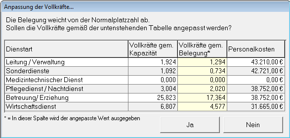 Wurde bei dem Import eine Differenz zwischen der Belegung und der Platzzahl festgestellt, wird ein Fenster angezeigt in dem die Angleichung der Werte an die Belegung bestätigt werden kann.