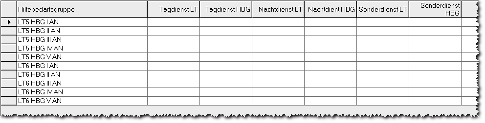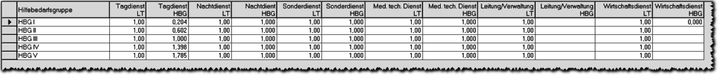 Die HBG-Gewichtung für diesen Einrichtungstyp bleibt leer. Diese Informationen werden hier nicht benötigt. Da hier keine Werte angegeben werden, bleiben die Tagessätze der HBG-Stufen bei AN/AB immer gleich.