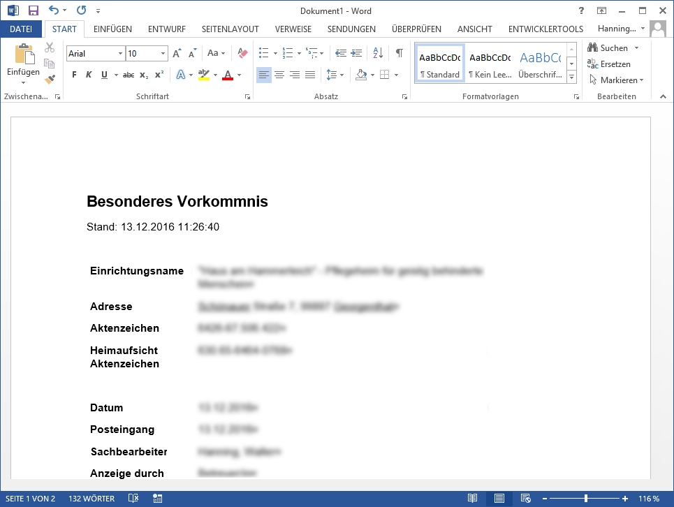 Über den Button können Sie sich das Vorkommnis als Word-Datei ausgeben lassen.