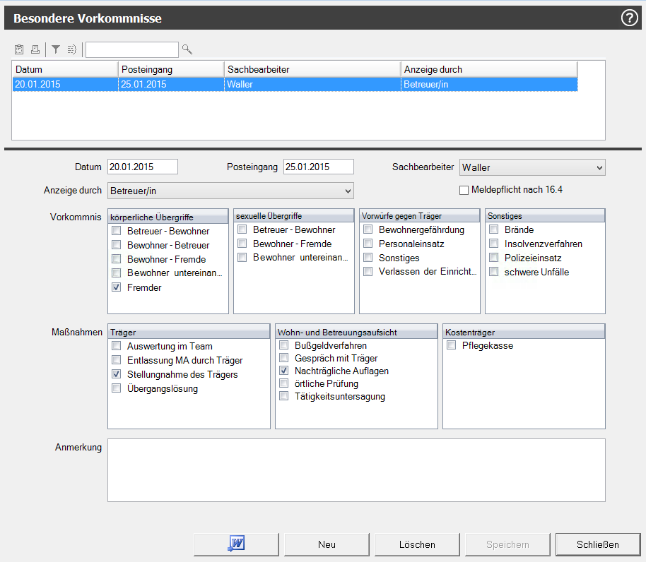Ein neues Vorkommnis erstellen Sie über den Button Neu.