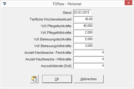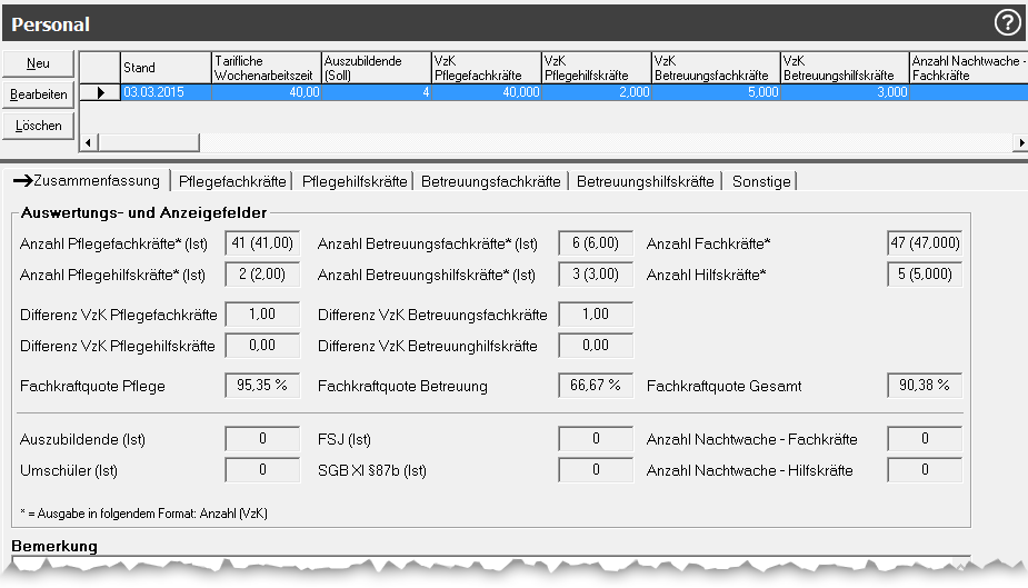 Die Werte im Bereich Auswertungs- und Anzeigefelder werden aus den Soll-Werten und dem hinterlegten Personal gebildet.