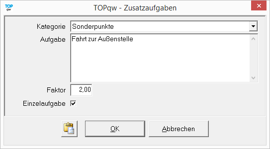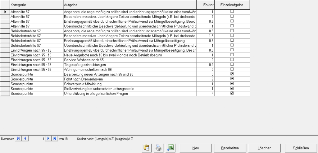 Definieren Sie in den vorgegebenen Kategorien die Aufgabe, den Faktor und ob es sich um eine Einzelaufgabe handelt.