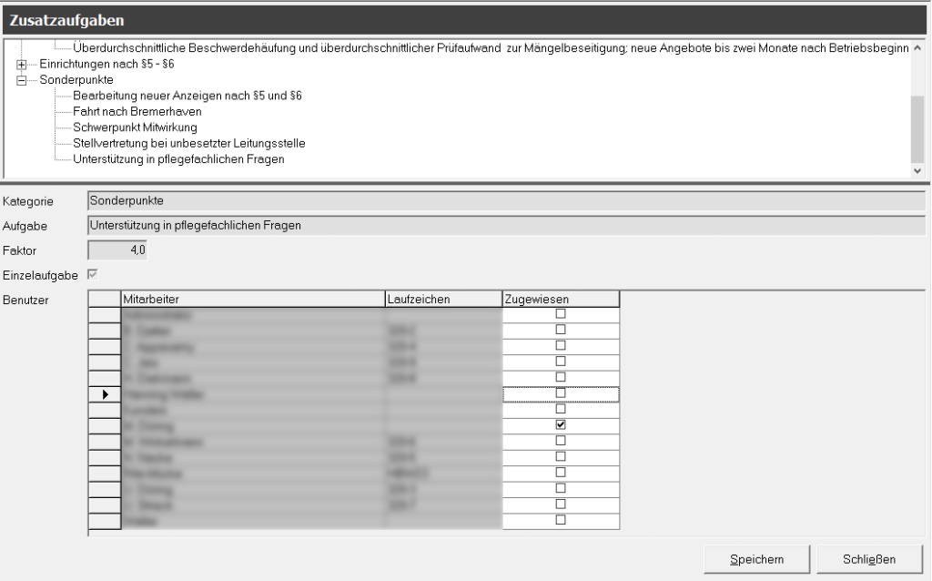 Die unter Daten → Aufgaben definierten Aufgaben können Sie hier den hinterlegten Mitarbeitern zuordnen.