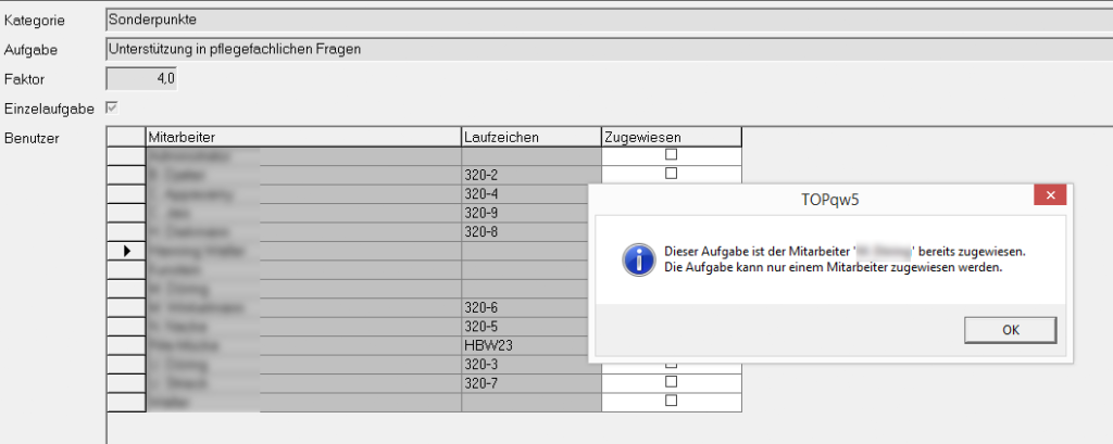 Sollte es sich um eine Einzelaufgabe handeln, werden Sie bei dem Versuch die Aufgabe mehrfach zu vergeben darauf hingewiesen.