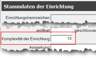 Zusätzlich zu diesen Faktoren kann jede Einrichtung ein Faktor unter den Stammdaten zugewiesen bekommen. Dort heißt es „Komplexität der Einrichtung“.